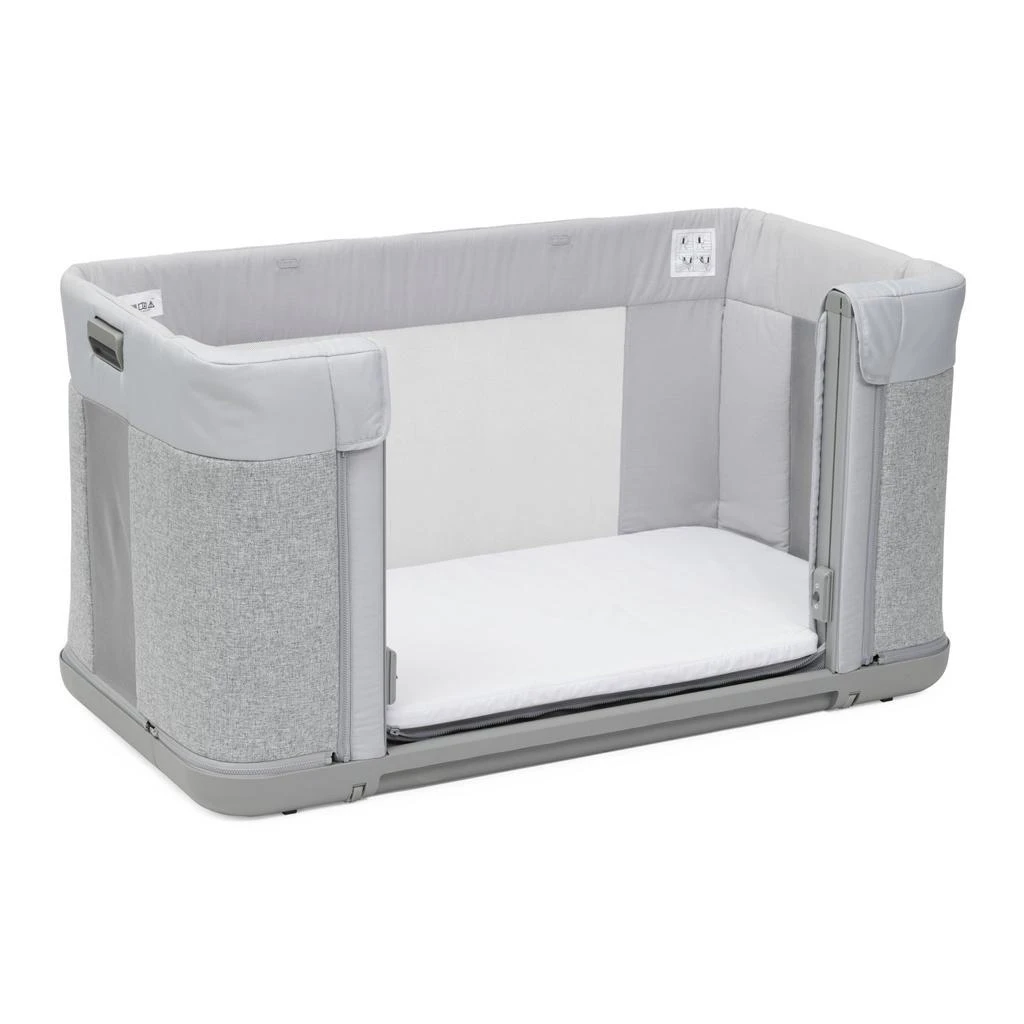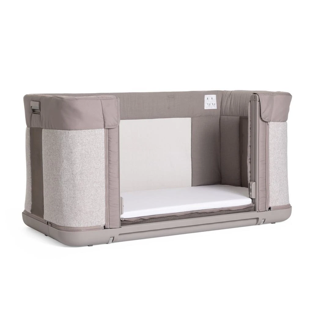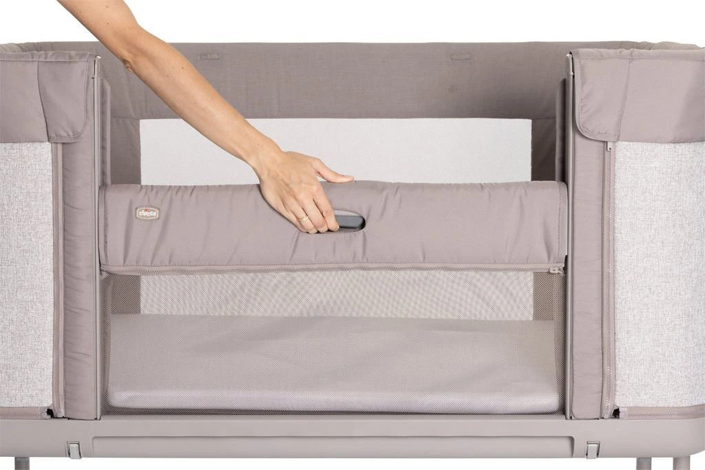- patentovaný systém zabraňuje tomu, aby boční strana zůstala spuštěna, když není dětská postýlka zcela připevněna k rodičovské posteli
