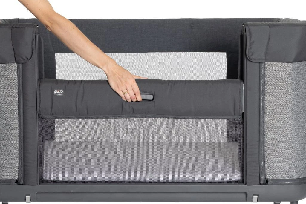 - nohy postýlky jsou sklopné, takže je možné postýlku připojit i k posteli s úložným prostorem