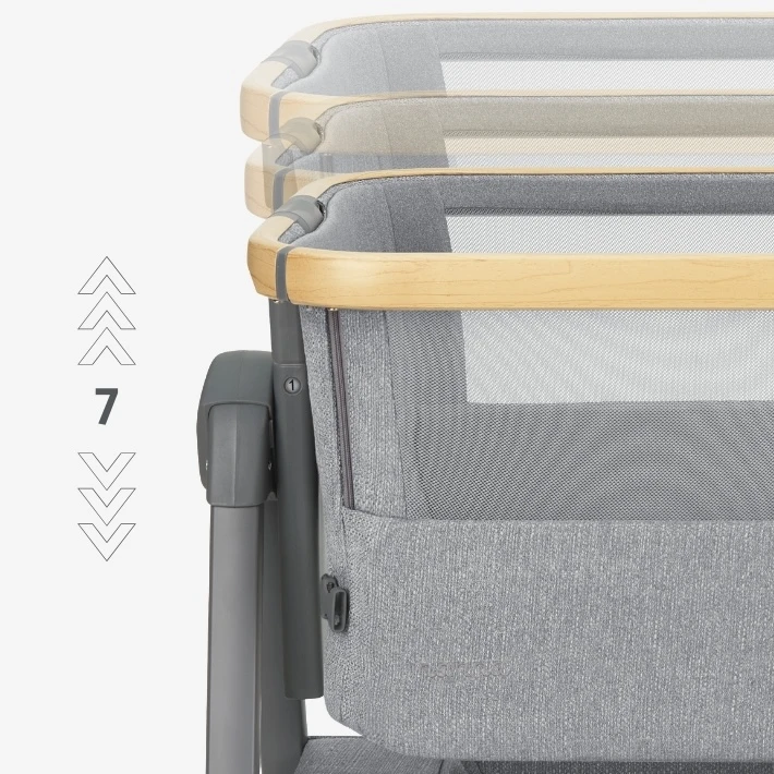 - 7 úrovní výškového nastavení, aby postýlka pasovala k různým typům postelí