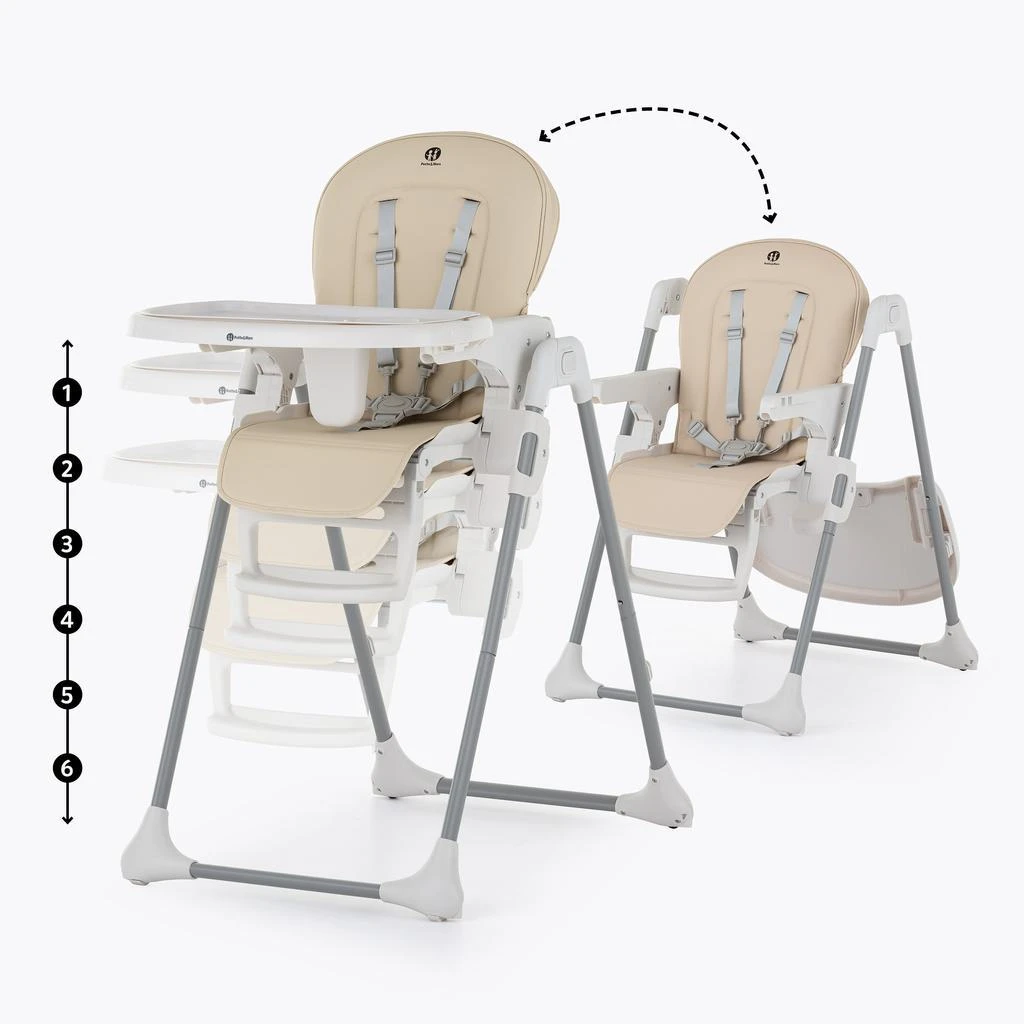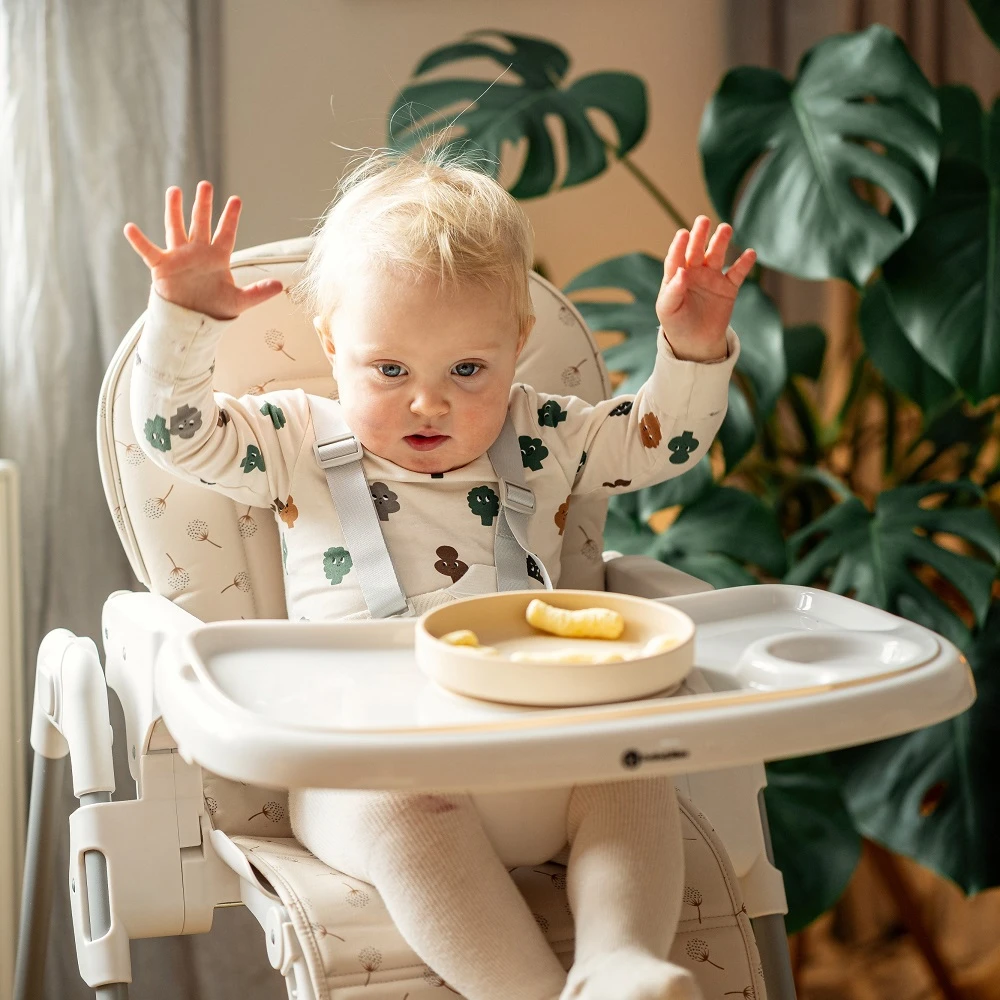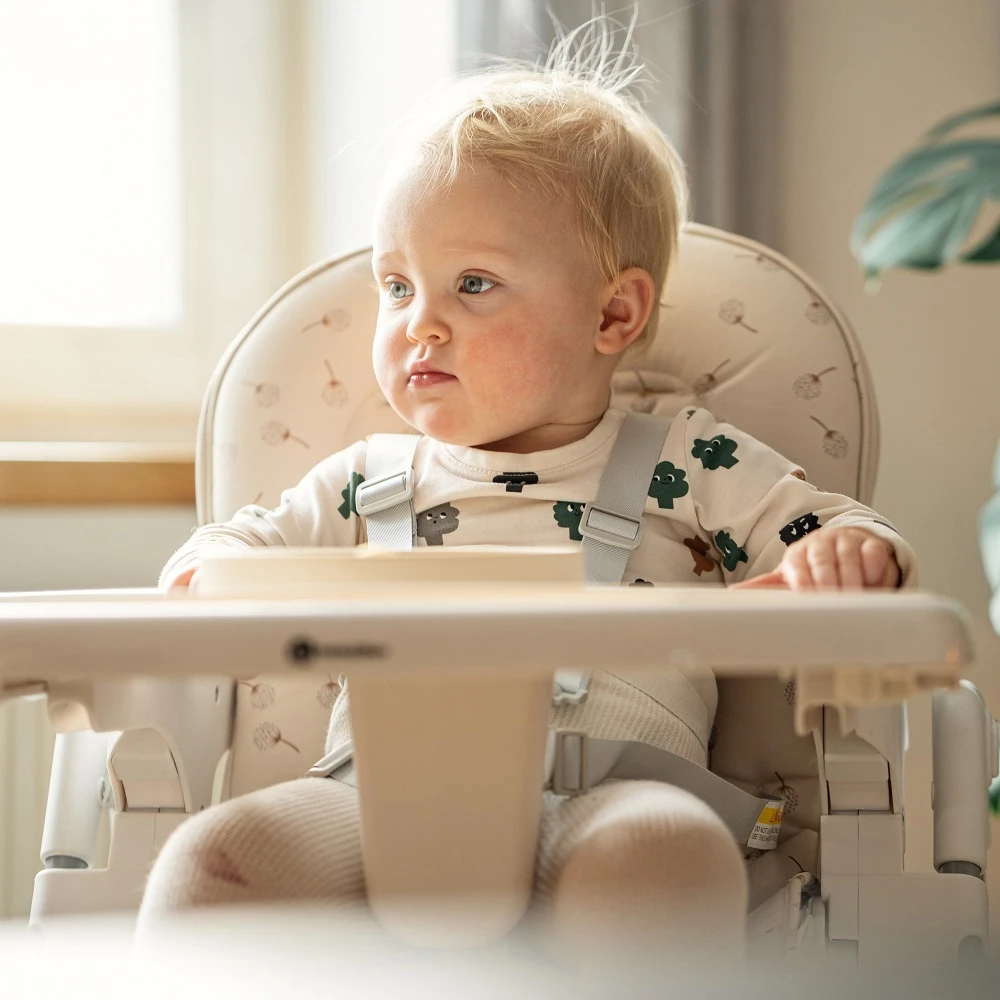Péče o životní prostředí, kterou jsme při tvorbě této židle zohlednili, nezastínila nejdůležitější aspekty výrobku – byl totiž navržen tak, aby co nejbezpečněji zlepšil každodenní život děťátka i rodičů. Židle má všechny funkce, které usnadňují každodenní krmení: Lze ji snadno sundat a vyčistit, má 5-bodové bezpečnostní pásy, nastavitelnou opěrku zad, nastavitelnou opěrku nohou, nastavitelnou výšku, dvě polohy pro podnos s horní částí, kterou lze mýt v myčce nádobí. Stabilní konstrukce židle zajistí bezpečnost vašeho dítěte bez ohledu na to, jak je aktivní nebo pohyblivé. Vysoce kvalitní provedení, promyšlená konstrukce, moderní a originální design a kompaktní skládání jsou nadčasové vlastnosti, které zajistí pohodlí pro vaše dítě od okamžiku, kdy se naučí sedět.