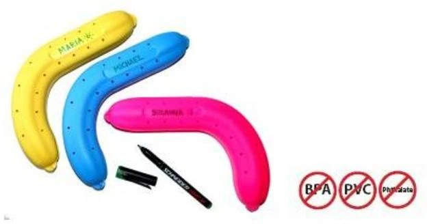 Praktické pouzdro na banán. Udržuje banán čerstvý a nepomačkaný. Vhodné na cestování či na svačinu do školy. Lihovým fixem je možno na pouzdro napsat jméno dítěte. Lze mýt v myčce. Materiál: polypropylen. Rozměr: 23cm x 10cm x 5cm. Váha: 64g. Výrobek je schválen pro styk s potravinami, neobsahuje ftaláty, PVC ani BPA. Vyrobeno ve Švédsku.
