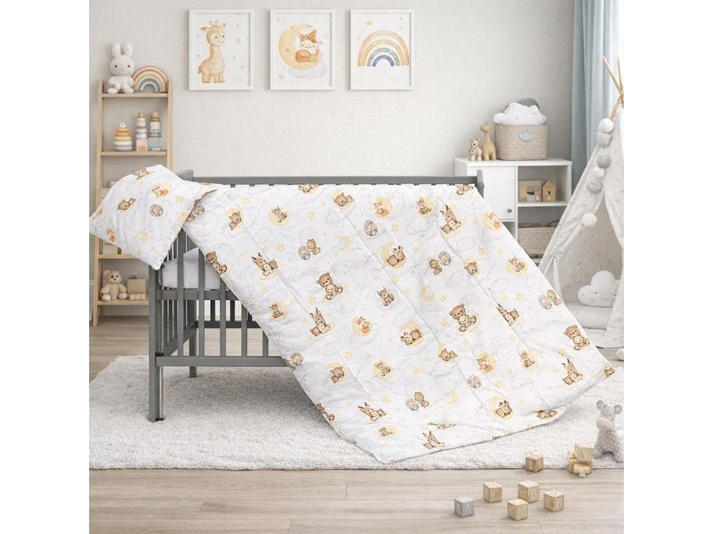 Elegantní design krásně doplní dětskou postýlku a vytvoří útulné prostředí pro klidné usínání i spánek. Povlečení je navíc snadné na údržbu a lze jej prát v pračce.