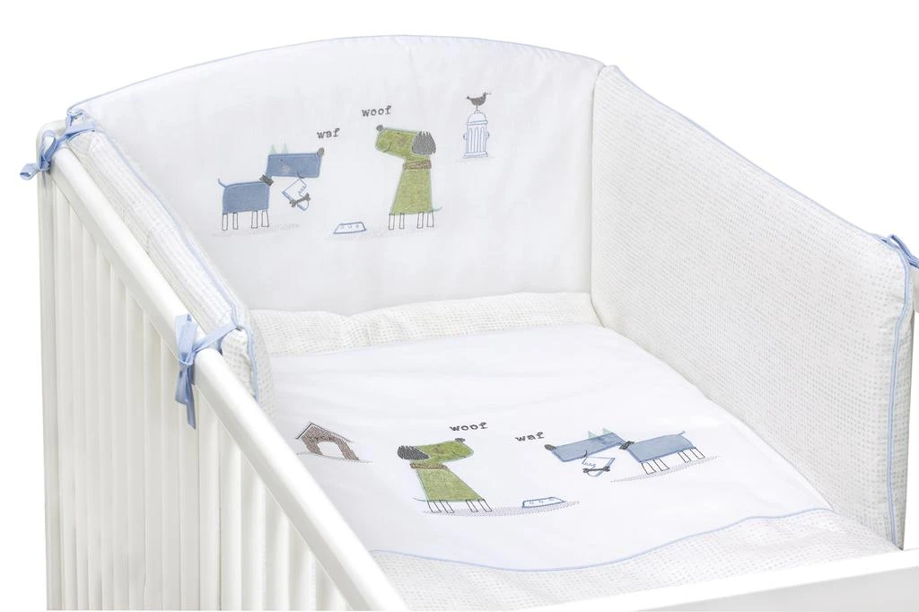 Souprava obsahuje: povlečení na přikrývku (100 x 135 cm), povlečení na polštářek (40 x 60 cm), mantinel (200 cm). Mantinel není vybaven suchým zipem. Prát ručně!