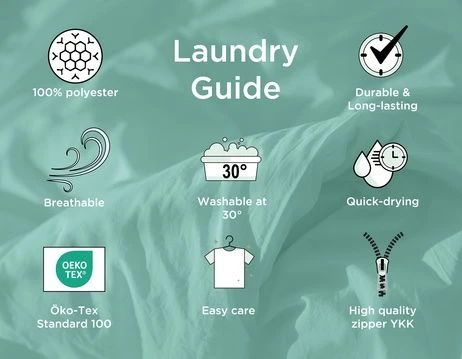 Souprava má rozměr přikrývky 140 × 200 cm a rozměr polštáře 70 × 90 cm a je vyrobena z příjemného mikrovlákna. Lehký, nežehlivý materiál je snadný na údržbu a složení 100% polyester zajišťuje dlouhou životnost. Praktický zipový uzávěr na polštáři i peřině usnadňuje převlékání a každodenní používání.