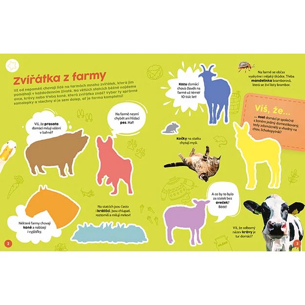 Naučná samolepková knížka obsahuje 16 tematických stran s fotografiemi a více než 100 samolepek pro dolepení. Na konci je navíc zajímavý kvíz, díky kterému si děti otestují své znalosti.