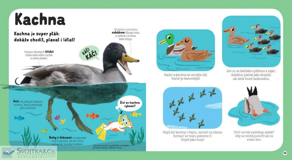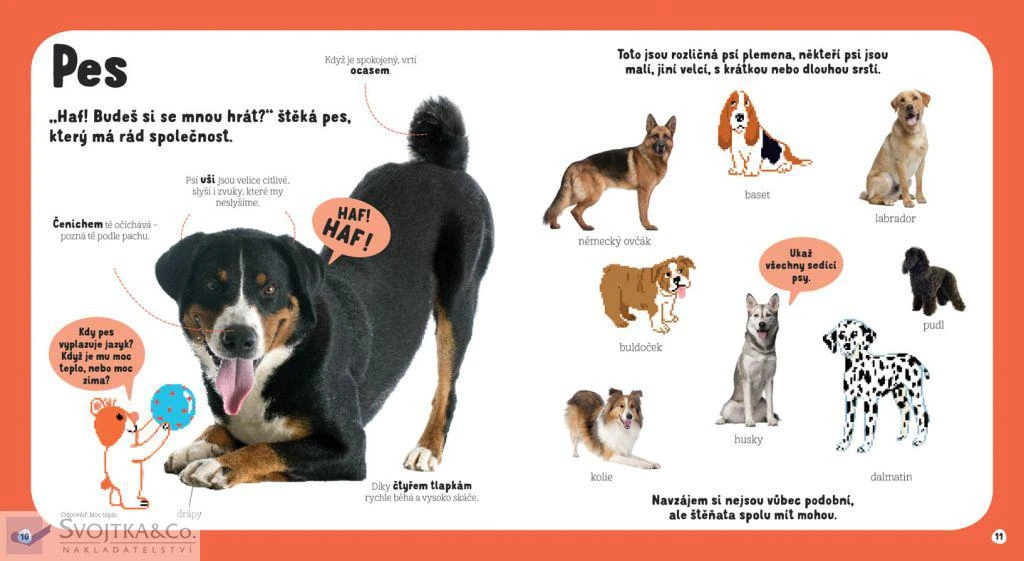 Nakladatelství Svojtka & Co. vydává převážně knihy pro děti předškolního věku, v nabídce najdete leporela s pohyblivými prvky, jako jsou například oblíbené MiniPEDIE. Vedle prvků pohyblivých mají leporela prvky hmatové - různé povrchy, materiály, reliéfy a otvory, které rozvíjejí jemnou motoriku dětí. Pro předškolní i školní děti připravuje celou řadu encyklopedií s odklápěcími okénky, naučné knihy pro starší děti, připravuje pro ně knihy o pokusech, počítačích, politice a financích, stejně jako o vztazích, bezpečnosti na internetu a zdraví fyzickém i psychickém. Celá řada pracovních sešitů pro děti a metodických příruček pro rodiče vychází z pedagogického směru podle Marie Montessori. Na českém knižním trhu působí s menšími obměnami od roku 1990, od roku 2005 vydává knihy také na Slovensku. Tituly přejímá od renomovaných světových nakladatelů.