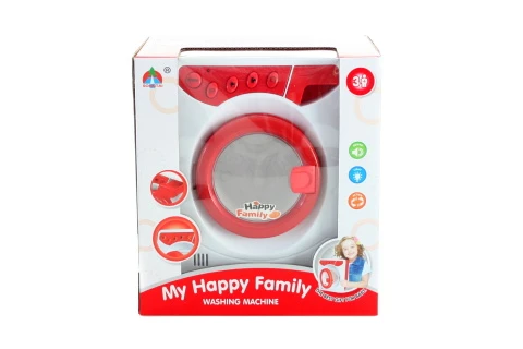 Plastová pračka na baterie vydává zvuky. Po zapnutí se spustí zvuk napuštění vody, poté se začne buben pračky otáčet. Baterie nejsou součástí (napájení 4x AA). Rozměry pračky cca 19 x 14 x 11 cm. Rozměry balení cca 20 x 21 x 13,5 cm.