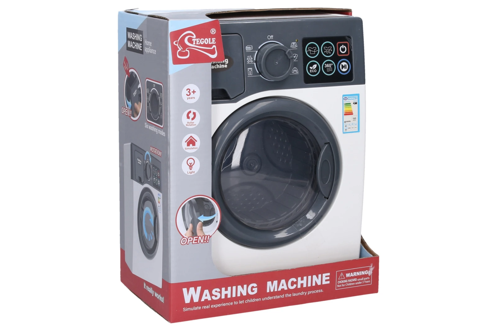 Rozměry 18.5x22x24.5 cm. Po zapnutí on/off tlačítkem, zvolte program a tlačítko go/stop zapne praní. Baterie 3xAA nejsou součástí.