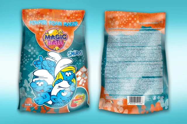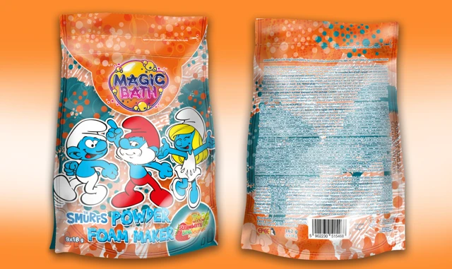 Práškové kapsle do vany Šmoulové s vůní limetky, pomeranče a jahody