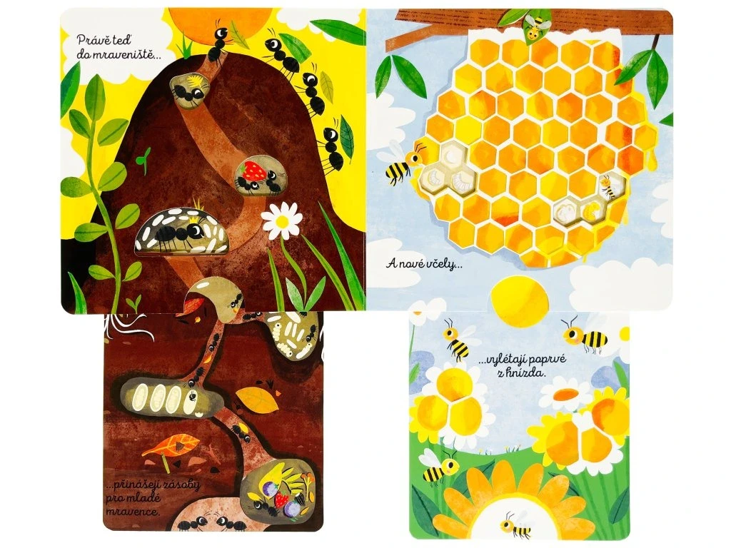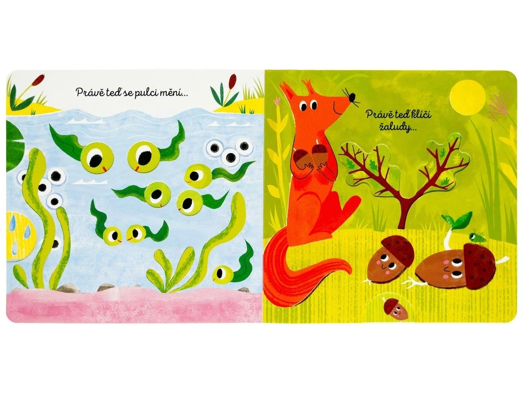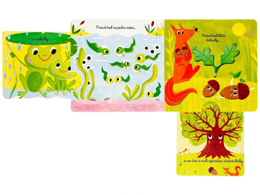 Tato kniha je krásně ilustrovaným interaktivním leporelem pro malé čtenáře, které je zavede do fascinujícího světa přírodních proměn. Sledujte s vašimi nejmenšími, jak se pulci mění v žáby, žaludy klíčí v mohutné duby a housenky se proměňují v pestrobarevné motýly. Naučte děti dívat se na svět kolem sebe a objevujte společně cykly přírody – od kapek deště tvořících řeku po semínka, z nichž jednoho dne vyroste jabloň či ohromná dýně. Díky jednoduchým a srozumitelným textům kniha dětem přibližuje zázraky přírody, probíhající každým dnem. Interaktivní vysunovací prvky rozvíjejí dětskou představivost a povzbuzují děti k hledání odpovědí na otázky, zatímco okouzlující podněcují dětskou zvídavost. Leporelo je ideální pro společné chvíle s rodiči i první samostatné čtení a objevování s knihou.
