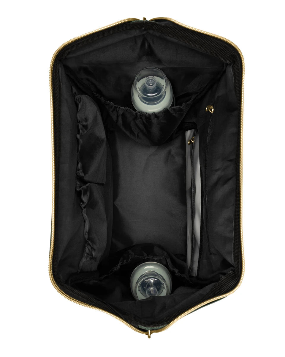 Uvnitř batohu najdete množství kapes a přihrádek i voděodolnou kapsu pro uložení vlhkých předmětů. Široký způsob otevírání batohu usnadňuje orientaci v uloženém obsahu. Na vnější straně najdete kapsy s uzavíráním na zip i kapsu pro uložení láhve. Termoizolační kapsy na láhve pomáhají udržet nápoje či mléko delší dobu v optimální teplotě. Součástí batohu je i přebalovací podložka.