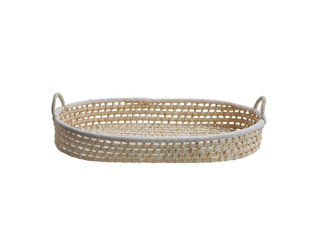 Materiál: sušená kukuřice, bavlněný lem na horním okraji košíku.