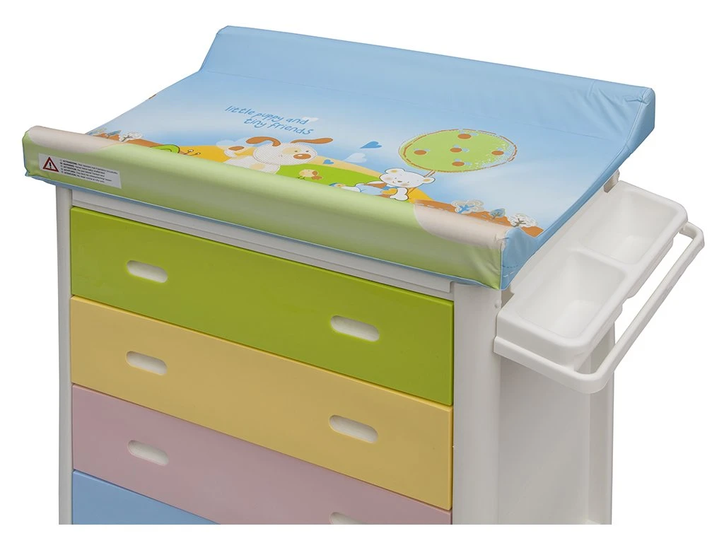 Přebalování: tvarovaná přebalovací podložka s pevnou deskou. Povrch podložky je vyroben z bezpečného PVC nejvyšší kvality, neobsahující ftaláty, je omyvatelná a lehce se udržuje v čistotě.