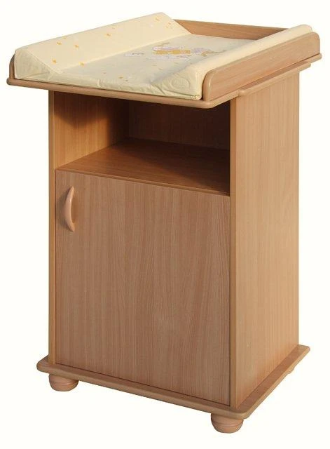 Komoda je vyrobena z laminátu ve vybraném odstínu. Je vybavena dvířky za kterými jsou dvě praktické přihrádky. Nad dvířky je jednoduše přístupná další přihrádka. Horní přebalovací díl je odnímatelný a proto je možné využívat přebalovací pult i jako praktickou komodu. Do horního přebalovacího dílu je ideální dokoupit přebalovací podložku 70 x 50 cm.