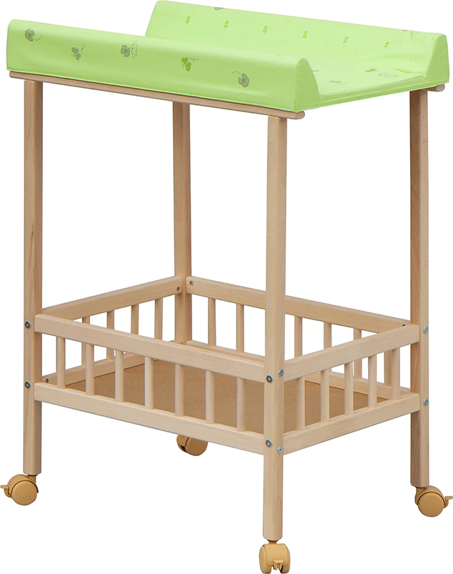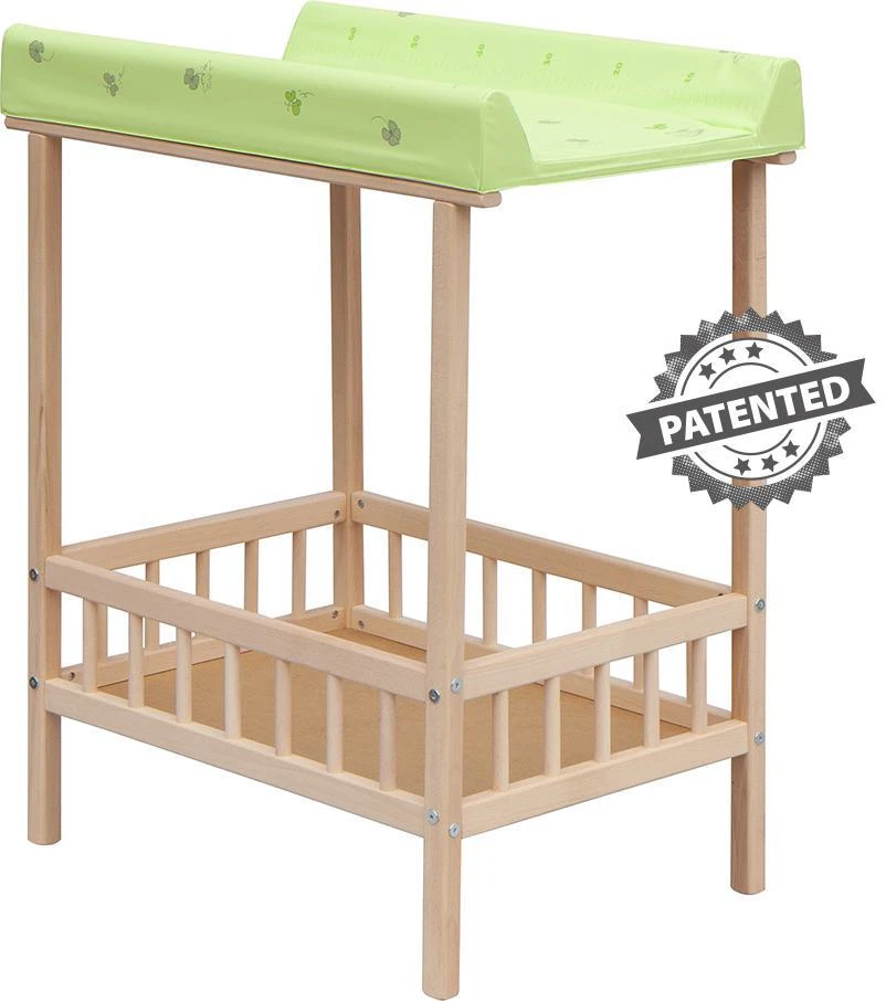 Praktický přebalovací pult se dvěmi policemi z HDF desky. Vrchní přebalovací pult z polyuretanu potažený omyvatelným PVC, vyztužený MDF deskou.