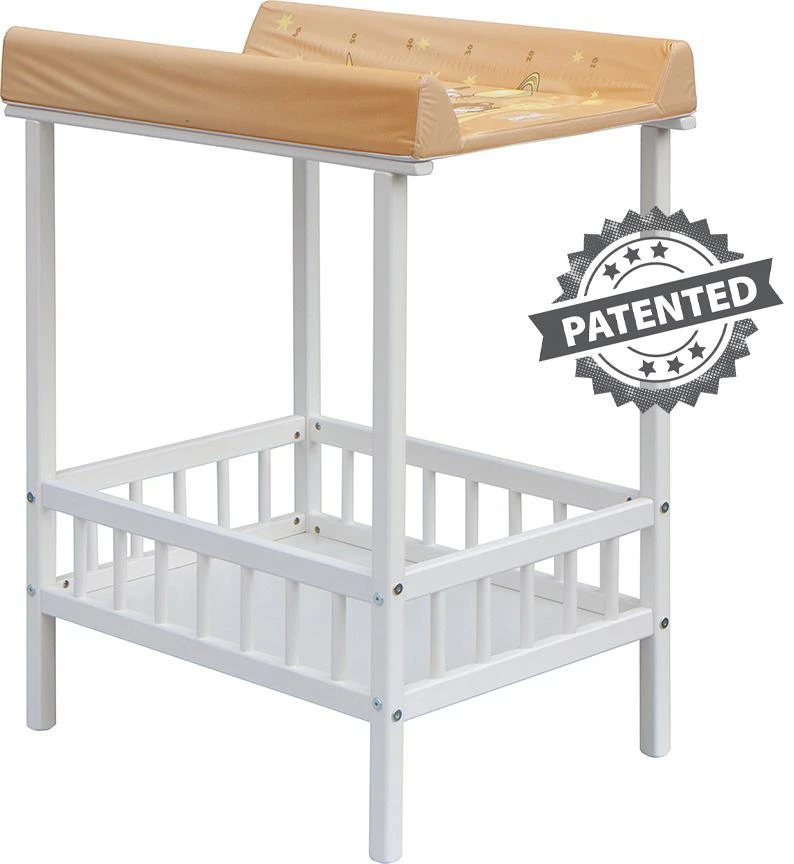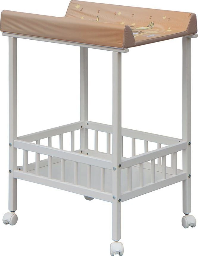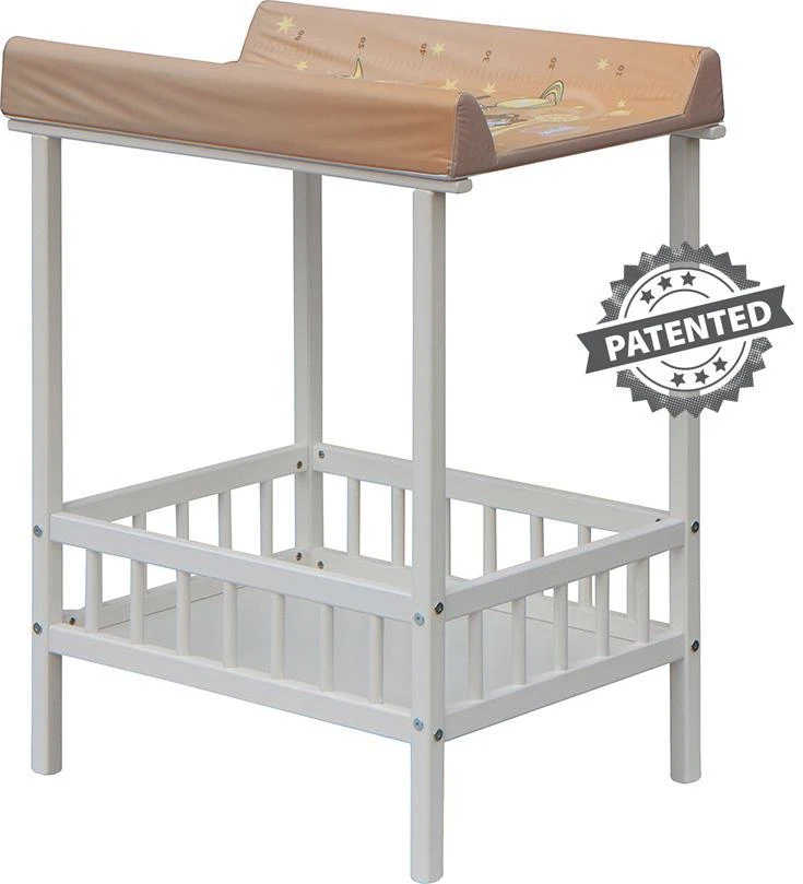 Praktický přebalovací pult se dvěmi policemi z HDF desky. Vrchní přebalovací pult z polyuretanu potažený omyvatelným PVC, vyztužený MDF deskou.