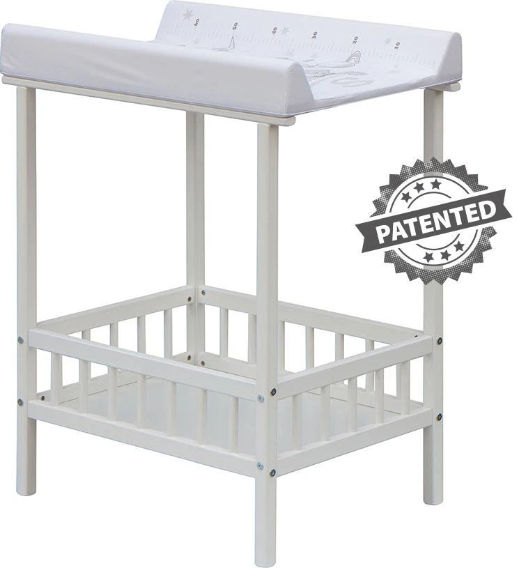 Praktický přebalovací pult se dvěmi policemi z HDF desky. Vrchní přebalovací pult z polyuretanu potažený omyvatelným PVC, vyztužený MDF deskou.