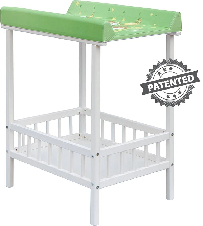 Praktický přebalovací pult se dvěmi policemi z HDF desky. Vrchní přebalovací pult z polyuretanu potažený omyvatelným PVC, vyztužený MDF deskou.