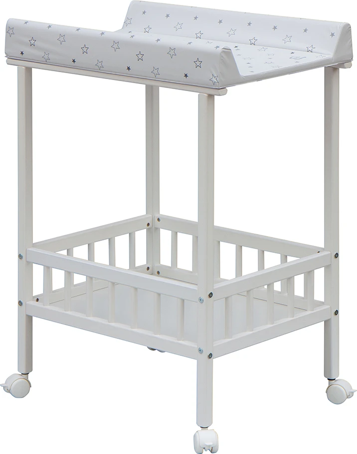 Praktický přebalovací pult se dvěmi policemi z HDF desky. Vrchní přebalovací pult z polyuretanu potažený omyvatelným PVC, vyztužený MDF deskou.