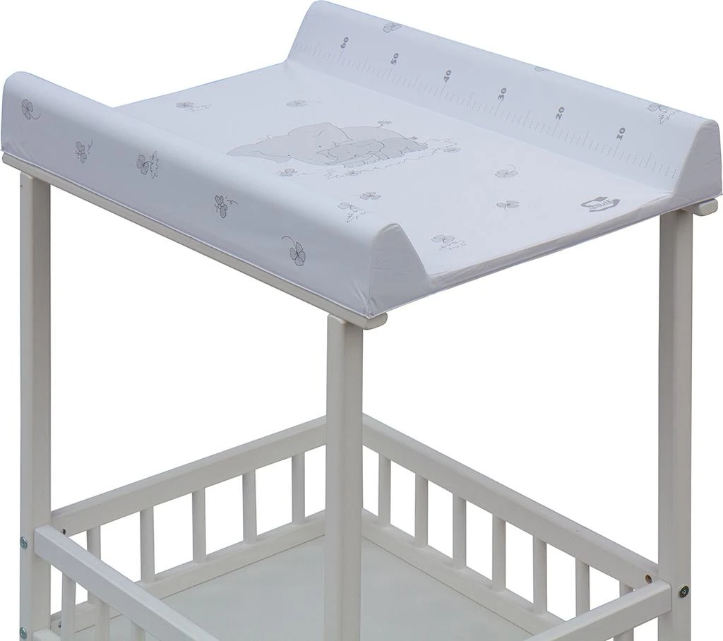 Praktický přebalovací pult se dvěmi policemi z HDF desky. Vrchní přebalovací pult z polyuretanu potažený omyvatelným PVC, vyztužený MDF deskou.
