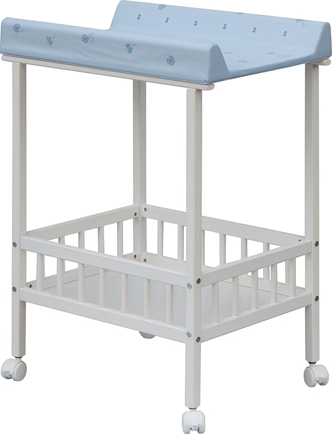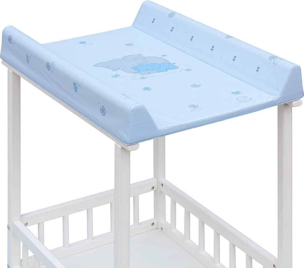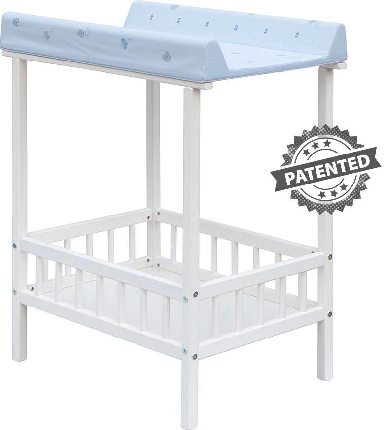 Praktický přebalovací pult se dvěmi policemi z HDF desky. Vrchní přebalovací pult z polyuretanu potažený omyvatelným PVC, vyztužený MDF deskou.