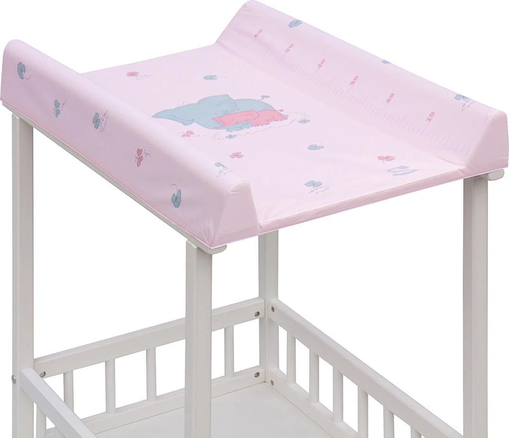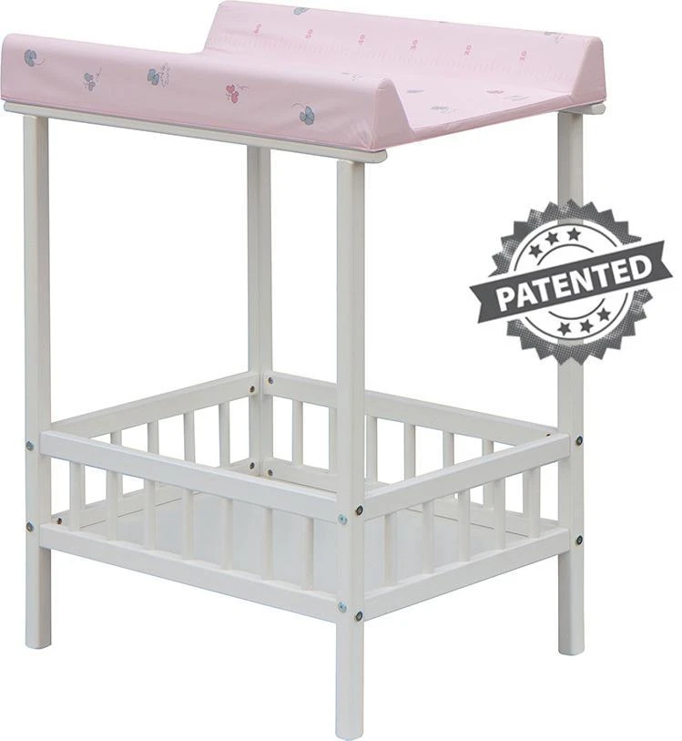 Praktický přebalovací pult se dvěmi policemi z HDF desky. Vrchní přebalovací pult z polyuretanu potažený omyvatelným PVC, vyztužený MDF deskou.