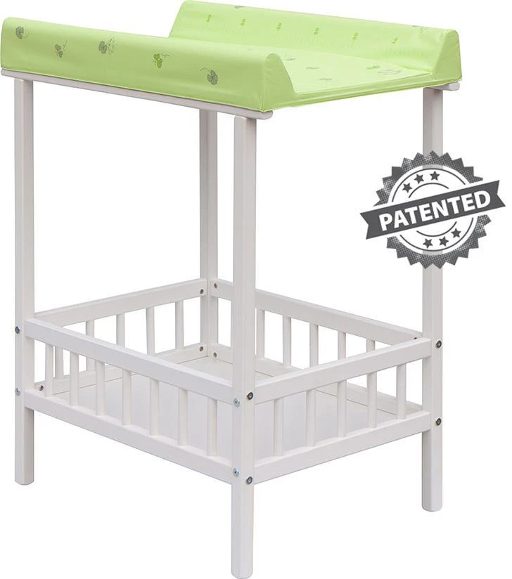Praktický přebalovací pult se dvěmi policemi z HDF desky. Vrchní přebalovací pult z polyuretanu potažený omyvatelným PVC, vyztužený MDF deskou.