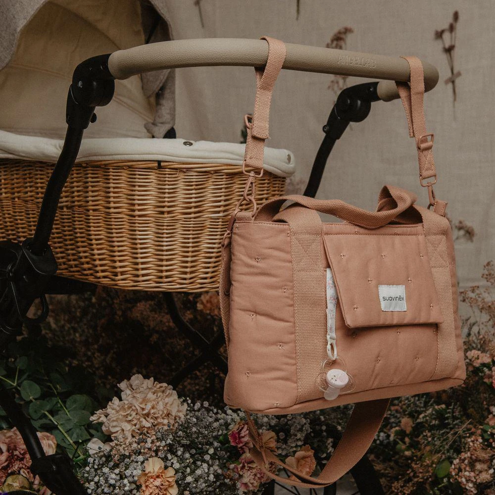 Perfektní kombinace elegance a funkčnosti – tato malá přebalovací taška je nepostradatelným pomocníkem pro maminky na cestách.