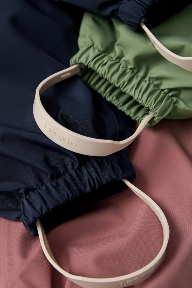 - doplňky: plastový zip s kovovým jezdcem, silikonová nášivka s logem Leokid, elastické polyesterové šle, a silikonové nánožníky
