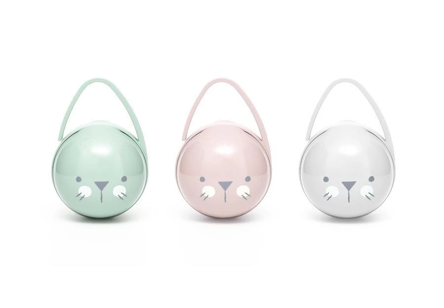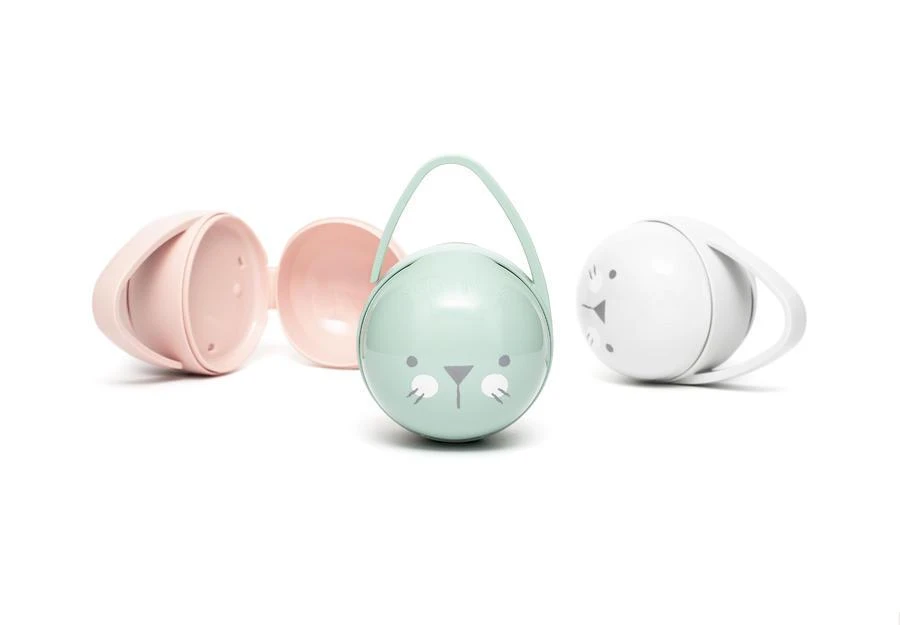 Praktická krabička na 2 dudlíky - krabičku můžete rozdělit na dvě části a box si dát s jedním dudlíkem pohodlně do kabelky. K zavěšení ke kočárku, postýlce nebo uložení do tašky: máte dudlíky vždy čisté a připravené pro další použití.