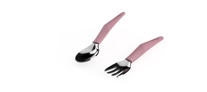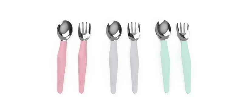 Nerezový příbor od Everyday byl navržen tak, aby jeho ergonomický tvar byl snadný na uchopení dětskou ručkou a usnadnil tak čas naučit se jíst.