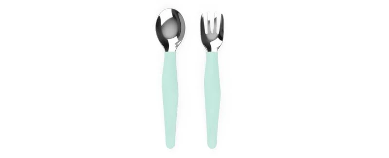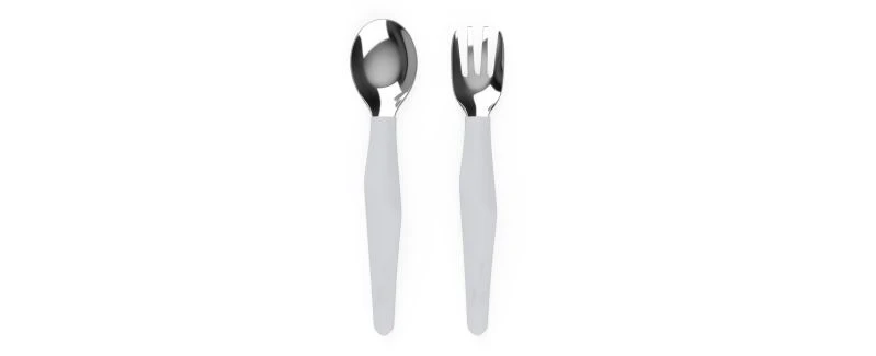 Nerezový příbor od Everyday Baby obsahuje lžičku a vidličku z nerezové oceli s elegantně navrženou rukojetí ze silikonu – ideální způsob pro vaše nejmenší, jak se naučit jíst.