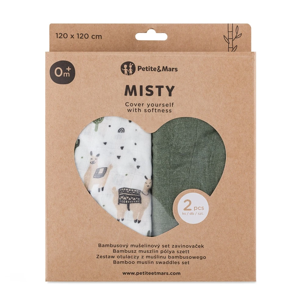 Přikrývka bambusová mušelínová 2 ks 120 x 120 cm Misty Petite&Mars