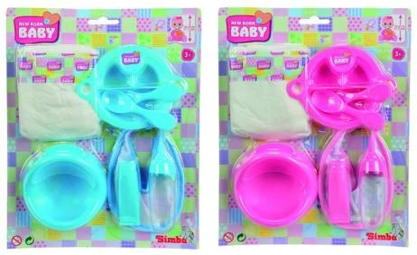 Set dětský pro panenky o velikosti 38-43 cm. Obsahuje potřeby na krmení, nočník a plínku. Cena za 1 balení.