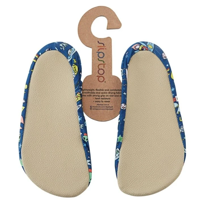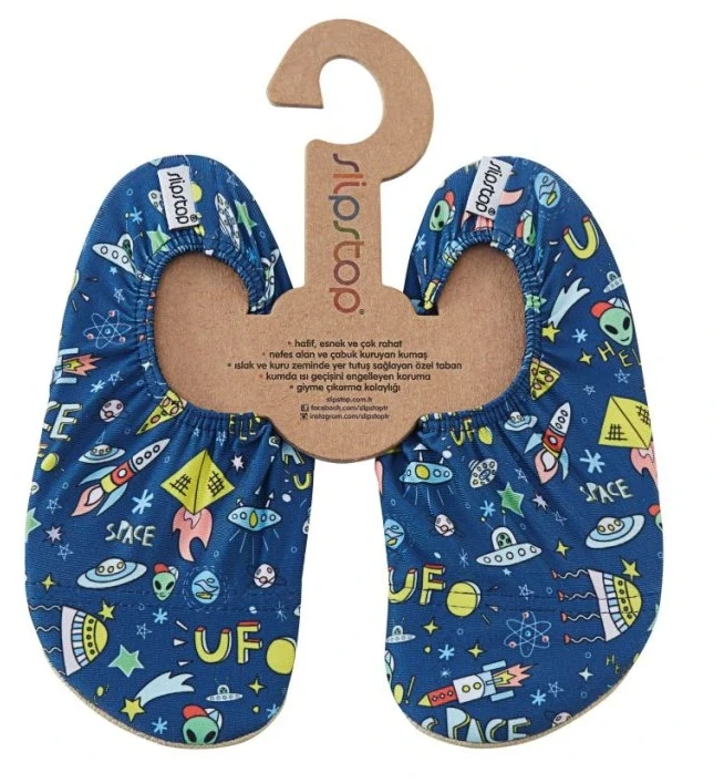 Slipstop je turecká značka založená v roce 2014, která se specializuje na výrobu obuvi s protiskluzovou podrážkou. Jejich produkty jsou navrženy tak, aby snižovaly riziko uklouznutí a pádu na kluzkých a mokrých površích. Obuv Slipstop je vyrobena z prodyšného a rychleschnoucího materiálu, což zajišťuje pohodlí při nošení. Díky lehkému a měkkému designu se snadno nazouvají i zouvají a na noze drží pomocí pohodlné gumičky. Jsou vhodné pro různé aktivity, jako je plavání, pobyt u bazénu, u moře, na koupališti, doma či při cvičení. Obuv Slipstop chrání nohu na horkém a kluzkém povrchu. Díky gumičce budou sedět i boty až o dvě čísla větší. Všechny produkty mají certifikát STANDARD 100 by OEKO-TEX®.