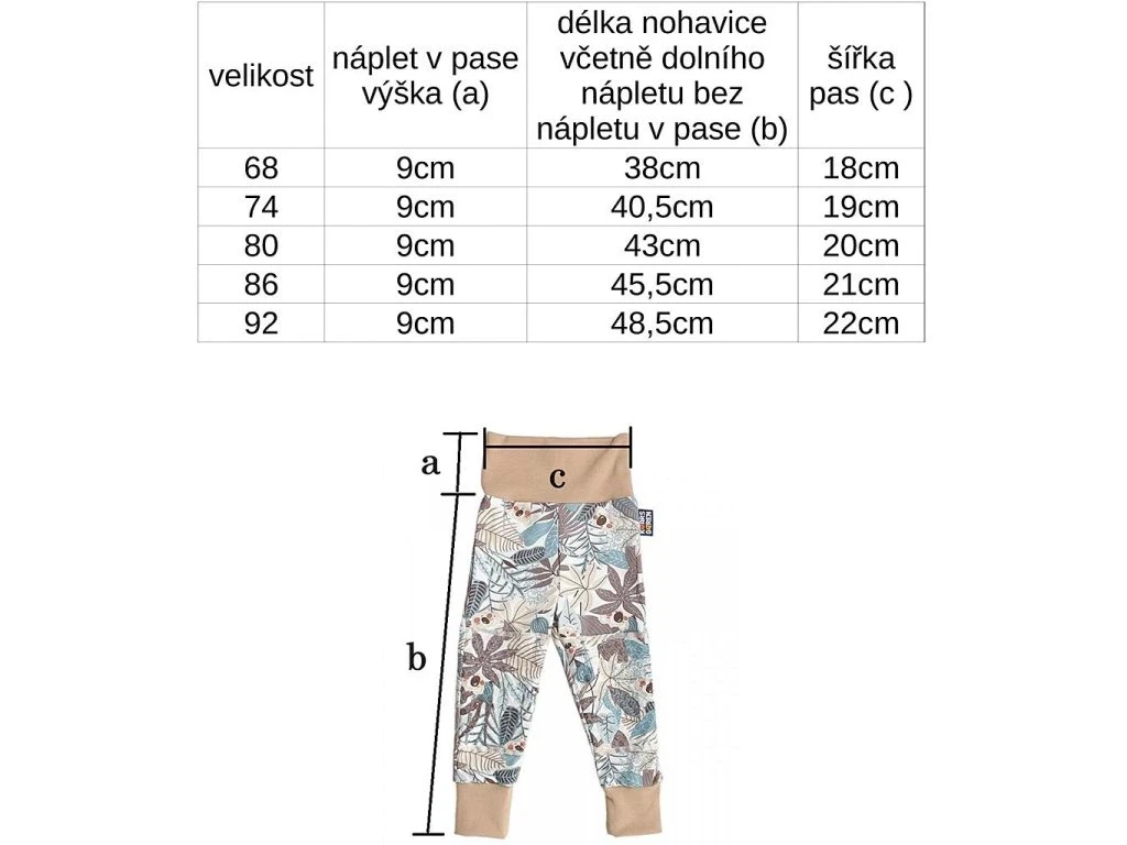 Použitá 100% bavlna je měkká, prodyšná a vhodná i pro citlivou pokožku. Široké náplety v pase a na nohavicích zaručí, že kalhoty dobře drží, ale zároveň nikde netlačí.