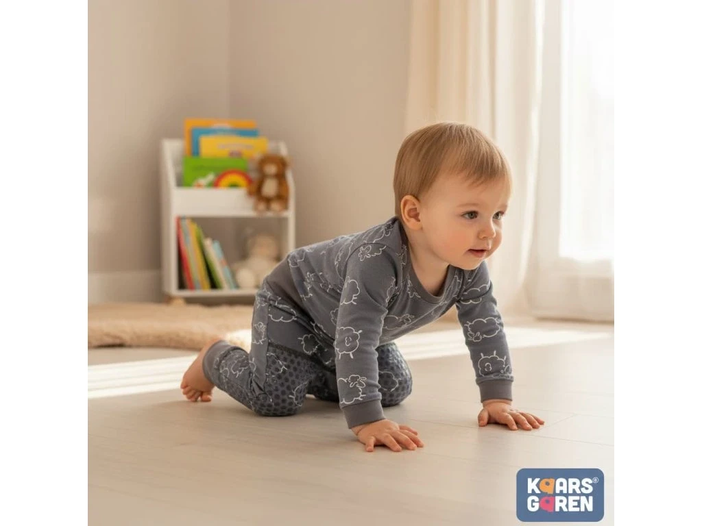 Kalhoty jsou navrženy speciálně pro děti, které milují objevování světa – ať už lezou, staví nebo dělají první krůčky. Díky protiskluzovým vsadkám na kolenou a holenní části se dítě lépe udrží na hladkých podlahách a při pohybu neklouže.