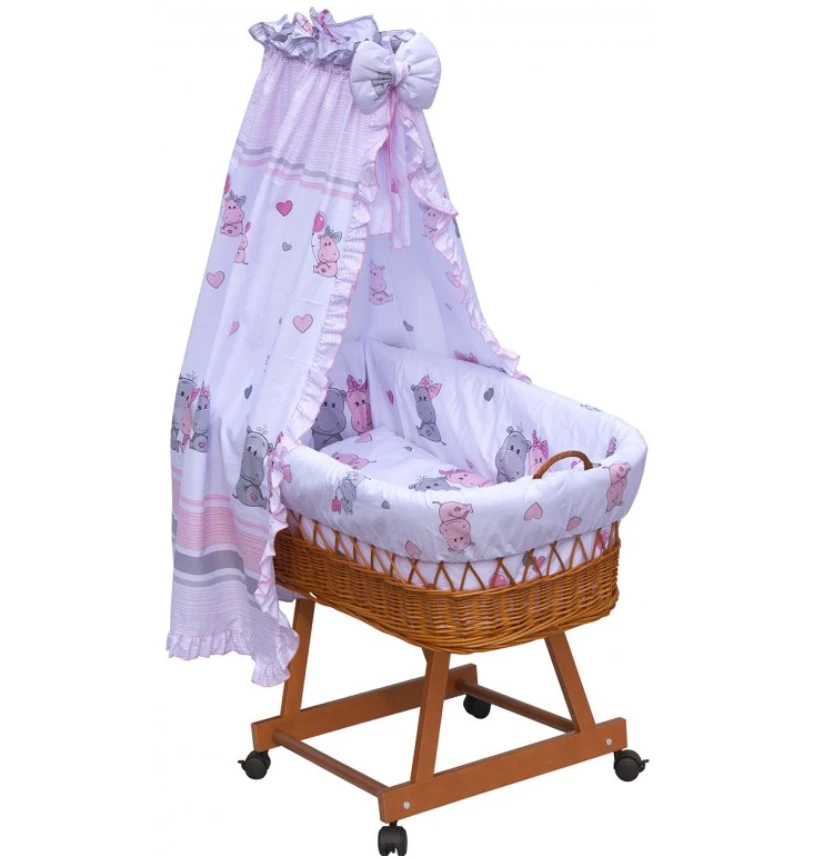 Proutěný košík na miminko s nebesy Scarlett Pupis - růžová
