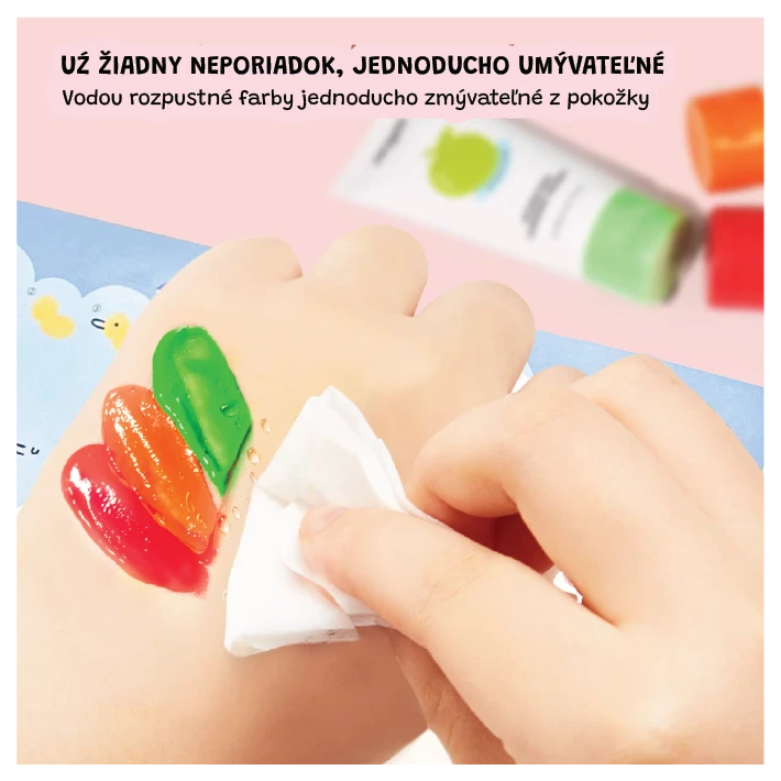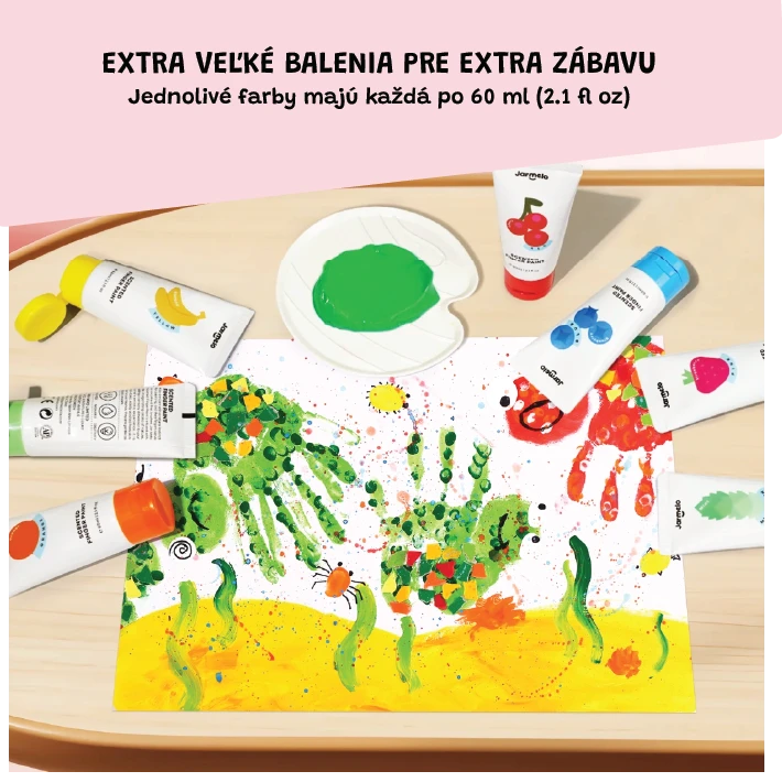 - Krémová textura vhodná pro malování prsty i štětcem – výborná pro rozvoj kreativity a motoriky