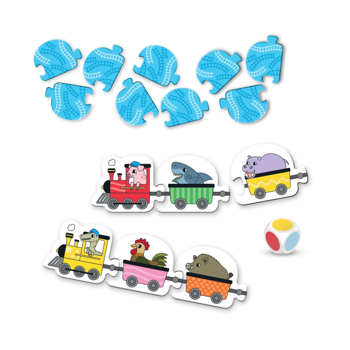 Barevný vláček je ideální první desková hra pro nejmenší děti od 2 let. Jednoduchá pravidla a hravý princip z ní dělají skvělý úvod do světa společenských her. Stačí hodit barevnou kostkou a správně přiřadit vagónek k mašince – a zábava může začít!