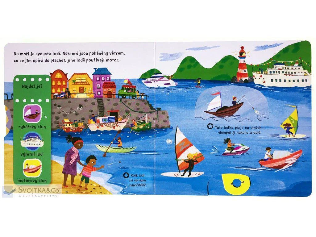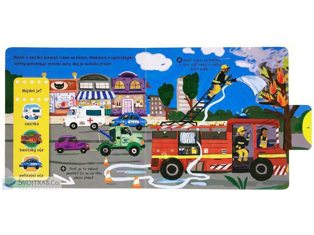 Tú, tú! Na silnici je velmi rušno. Co tu provádí automechanik? A tady spěchají hasiči a sanitka lidem na pomoc! Taky na moři je spousta lodí. Vidíš mezi nimi rozdíl? Podívej se pozorně na obrázky v tomto leporelu. Poznáš, jak se pohybují auta, lodě, vlaky, letadla? Kniha z řady První objevy s obrázky má v každé scéně pohyblivé prvky, díky nimž se děti seznámí s úžasným světem dopravních prostředků a zároveň si procvičí jemnou motoriku.