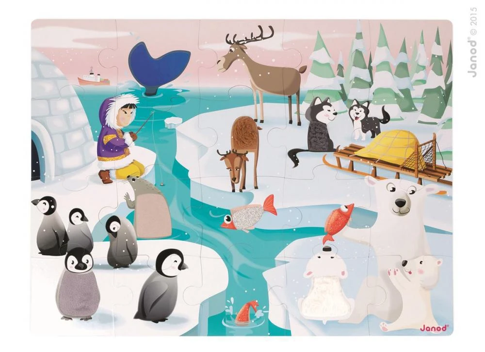 Puzzle dotykové Život na ledě s texturou 20 ks Janod