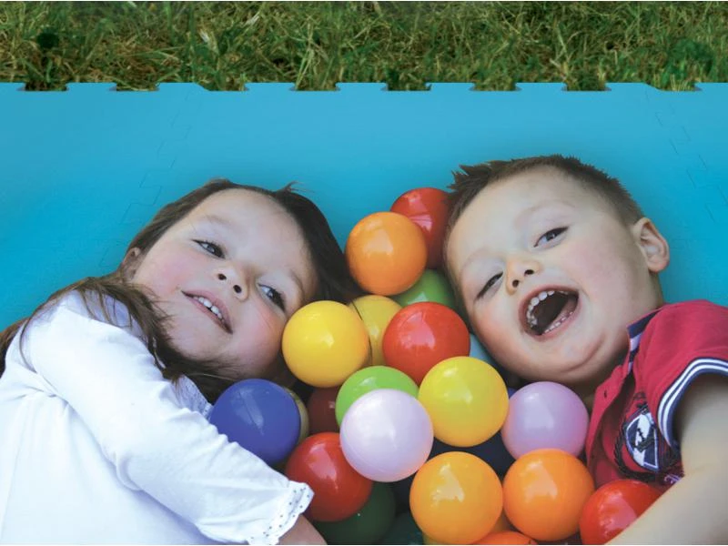Materiál je ohebný, odolný, tlumí nárazy a tepelně izoluje, takže je ideální jako hrací podložka na hraní i cvičení doma, na zahradě či na pláži.