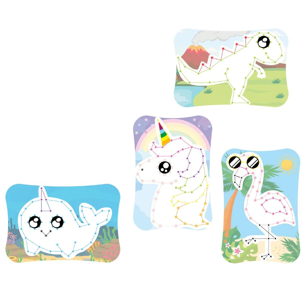 Pomocí duté tyčinky mohou děti od 4 let snadno natahovat nitě mezi kolíčky a jakoby kouzlem „kreslit“ obrázky zvířátek v nekonečném množství barevných variací. Při tvůrčí zábavě tak procvičují a zdokonalují svou jemnou motoriku i manuální zručnost a rozvíjejí koordinaci ruky a oka i kreativní myšlení.