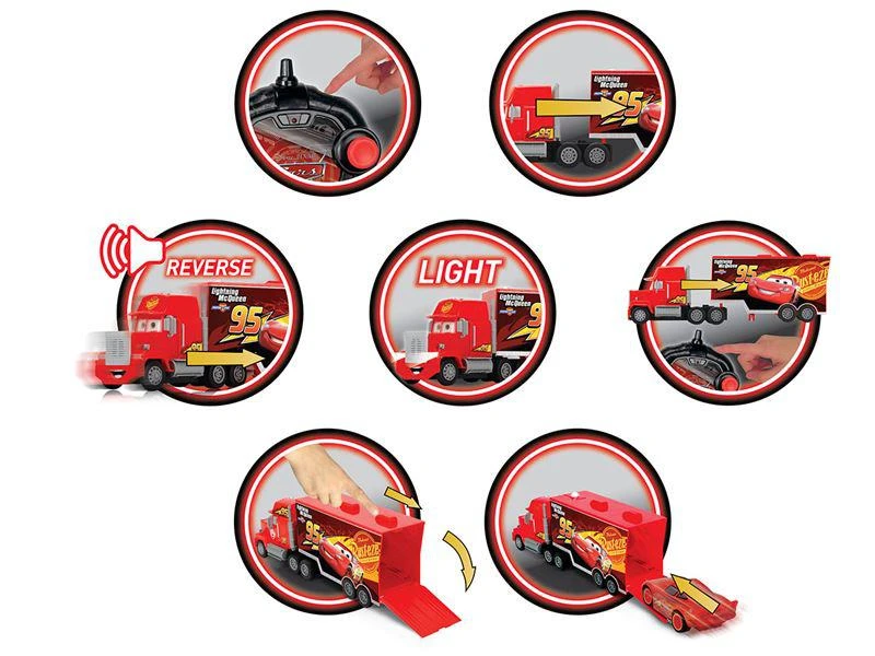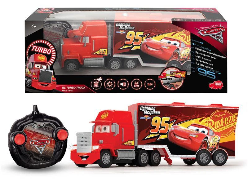 3 kanály, světlo, zvuk a turbo. Přívěs lze odpojit dálkovým ovládáním. Zadní dveře se otevírají mechanicky. Frekvece 2,4 GHz. Měřítko 1:24, délka 46 cm.