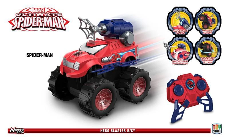 RC autíčko na dálkové ovládání v licenci Spider-Man. Vystřeluje pavučinu umístěnou na střeše autíčka, ovládané z ovladače.