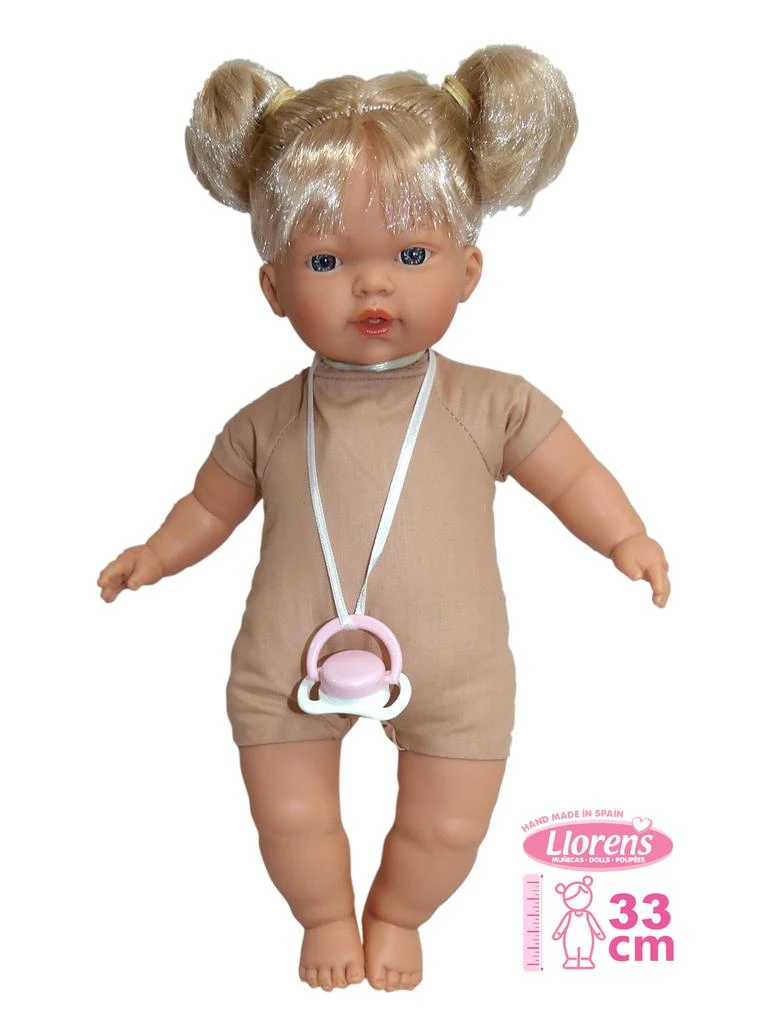 Velikost panenky 33 cm. Ručně vyrobeno ve Španělsku, baleno v igelitovém obalu. Doporučený věk od 3 let. Tento model je bez oblečení a proto doporučujeme k panence dokoupit originální oblečení z nabídky Llorens pro panenky velikosti 33 cm.