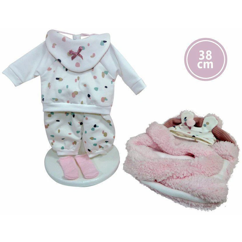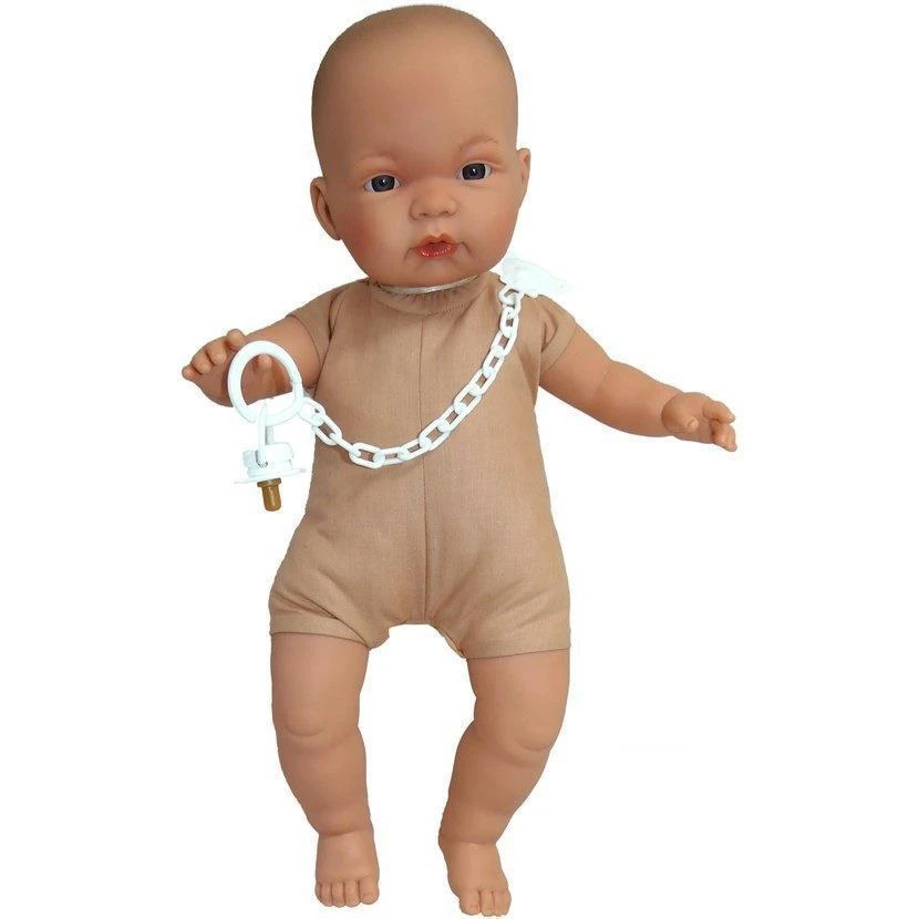 Díky vybranému oblečku je možné z panenky miminka při hraní udělat jak variantu holčičky, tak chlapečka. Velikost panenky 38 cm. Ručně vyrobeno ve Španělsku, baleno v igelitovém obalu. Doporučený věk od 3 let. Součástí balení je 3 x knoflíková baterie LR44 s návodem na její výměnu.