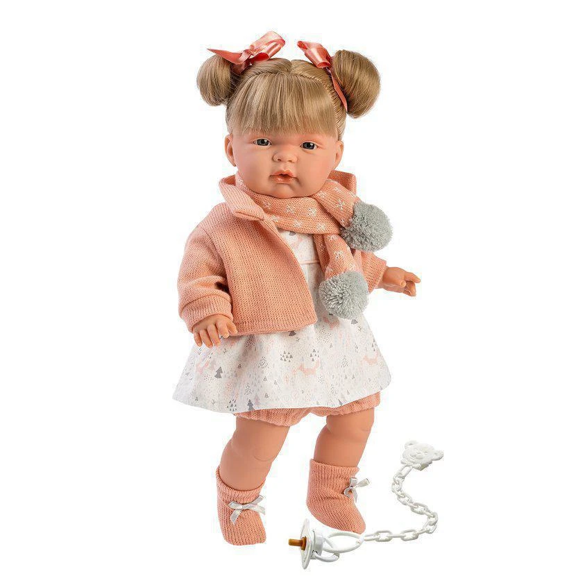 Realistická panenka Joelle se zvuky a měkkým látkovým tělem 38 cm Llorens