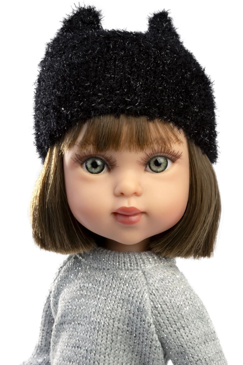 Panenka je polohovací a může i sedět. Velikost panenky 34 cm. Ručně vyrobeno ve Španělsku, baleno v dárkové krabici.